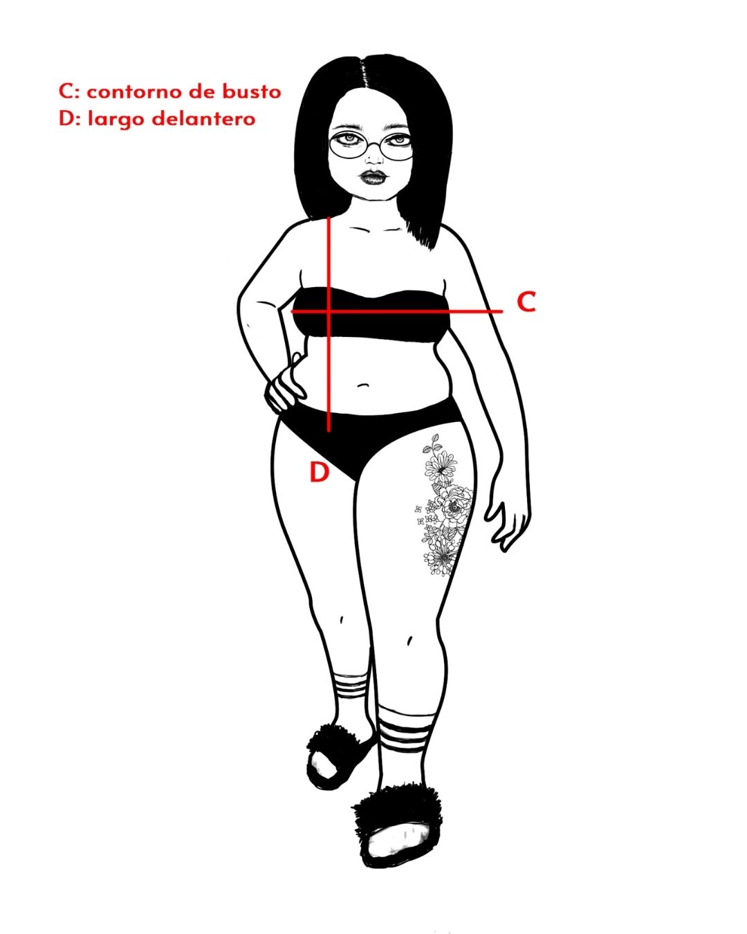 La medida de busto se toma al rededor de nuestro busto con el corpiño que uses habitualmente.